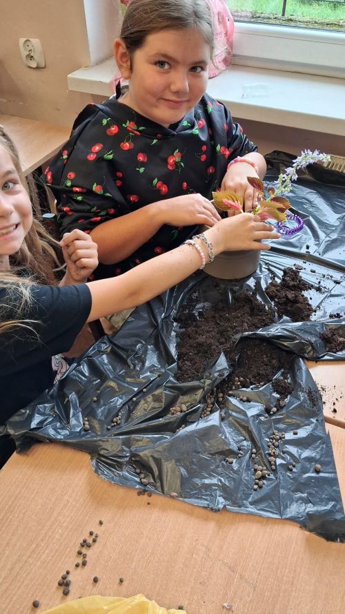 Sadzenie kwiatów w klasie trzeciej.