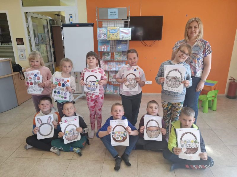 Oto kolejna wizyta pierwszaków w miejscowej bibliotece. Jest to miejsce bardzo przyjazne dzieciom, dlatego często tam bywają. Permanentnie, przez cały rok szkolny dzieci poznają kolejne przygody Fenka. Tym razem posłuchały o przygotowaniach ulubionego bohatera do Świąt Wielkanocnych. Spotkanie urozmaiciły zajęcia plastyczne i rozmowy o tradycjach, które warto kultywować. Przy współudziale biblioteki łatwiej nauczyć dzieci czytać, wyrażać myśli i rozumieć sposoby mówienia innych ludzi. Dlatego wkrótce ponownie się tam udamy.