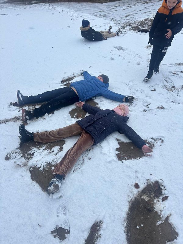 Z okazji pierwszych opadów śniegu, spontaniczna lekcja w-fu w klasie pierwszej. Ale to byla zabawa!